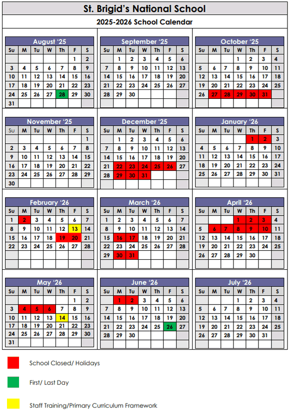 Download a printer friendly copy of the 2025-26 School Calendar